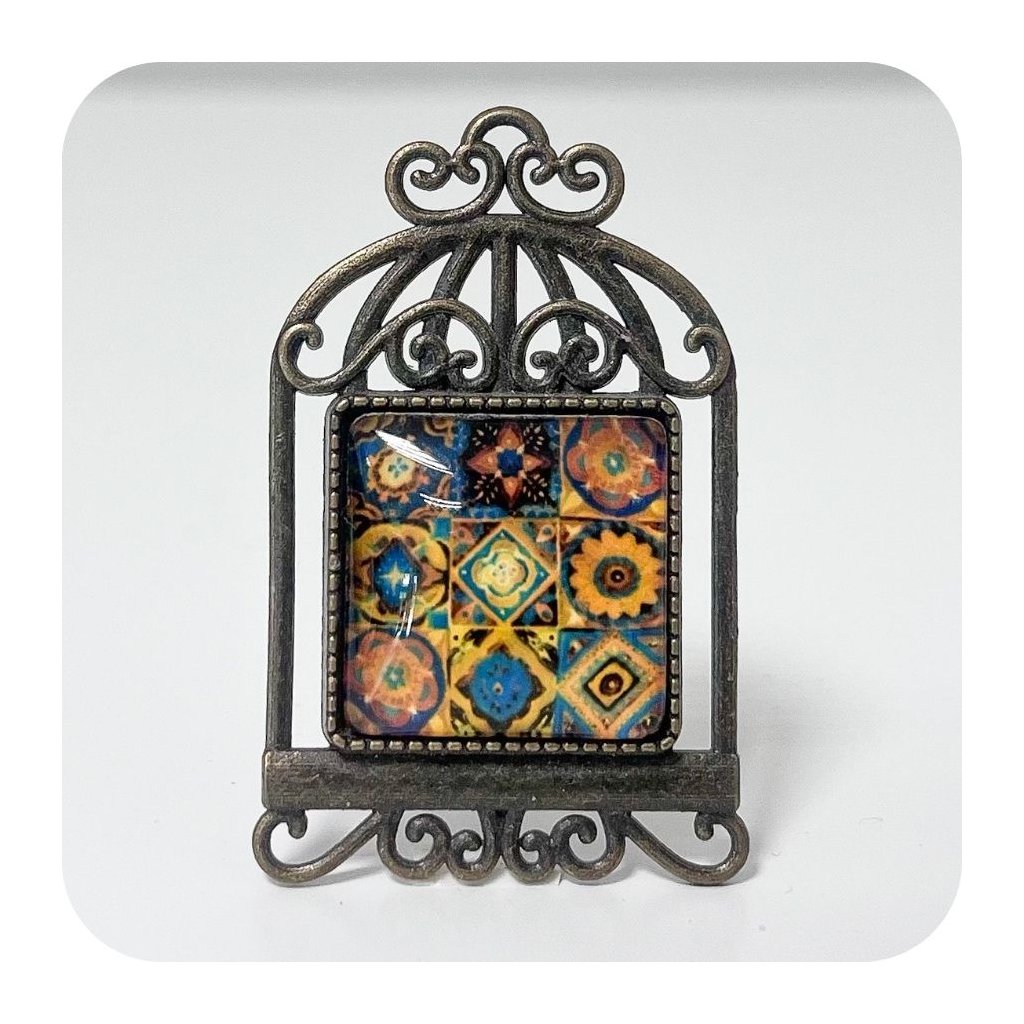 Peckovní brož ve tvaru klece s motivem mandal, je unikátním doplňkem, který zaujme svou originalitou a precizním zpracováním.