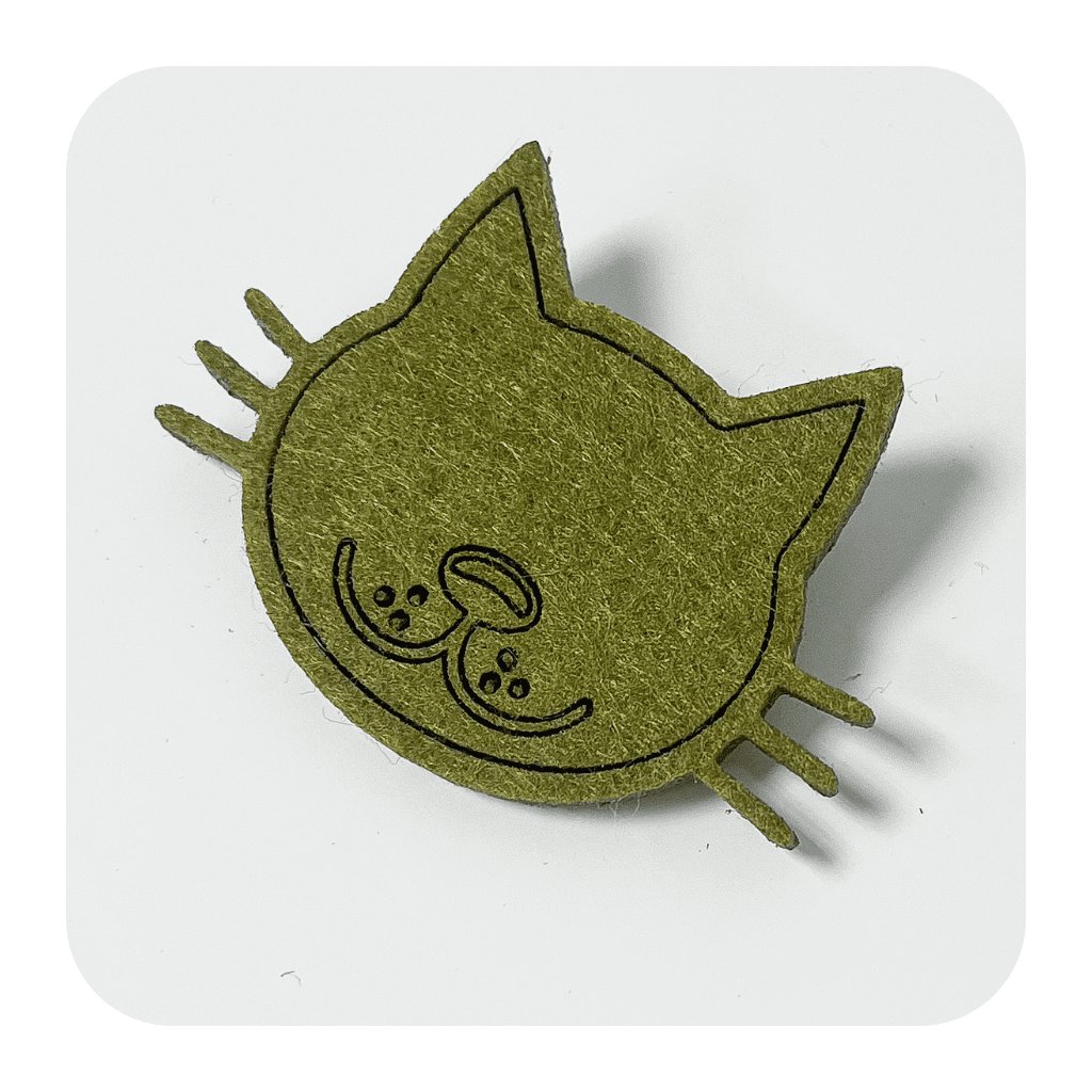Peckovní brož s motivem kočky, vyrobená v designové dílně FELT LABEL, je unikátním doplňkem, který zaujme svou originalitou a precizním zpracováním. Tento šperk je vytvořen na základě vlastního návrhu a k jeho výrobě byl použit průmyslový laser, který zajišťuje dokonalou přesnost a detail.