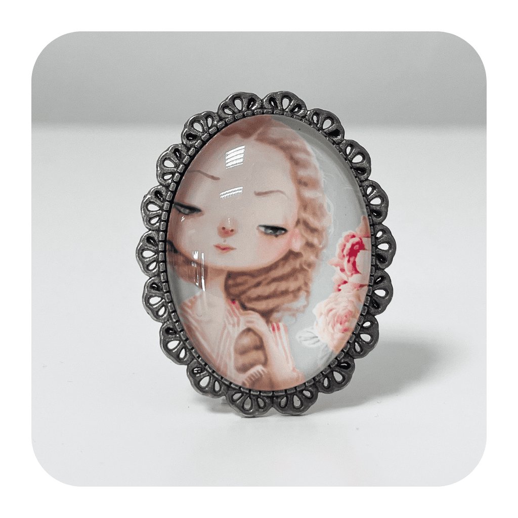 Peckovní brož s motivem panenky, je unikátním doplňkem, který zaujme svou originalitou a precizním zpracováním.
