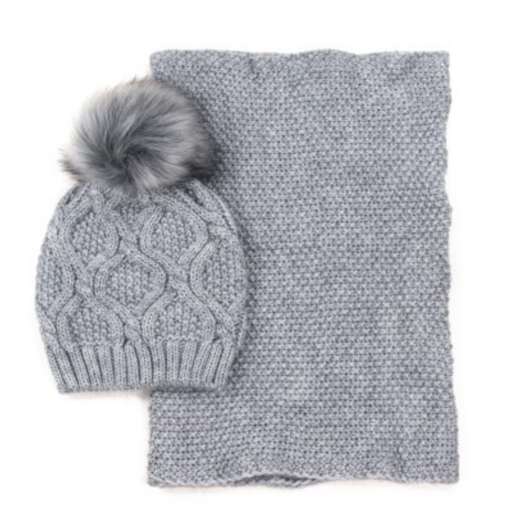 Okouzlující souprava skládající se z čepice s bambulí a nákrčníku.