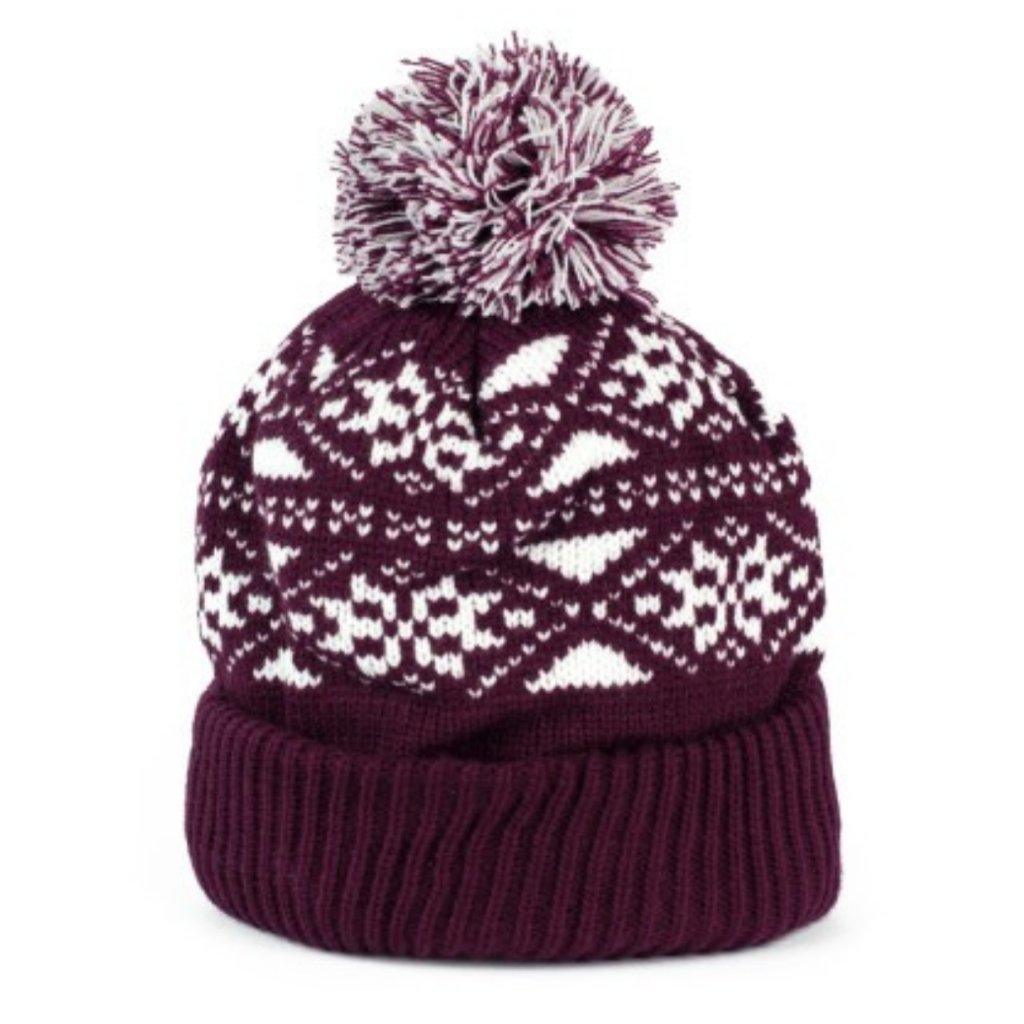 Pohodová čepice, která podtrhne tvůj outfit. Rolovací čepice s bambulí a sněhovými vločkami.