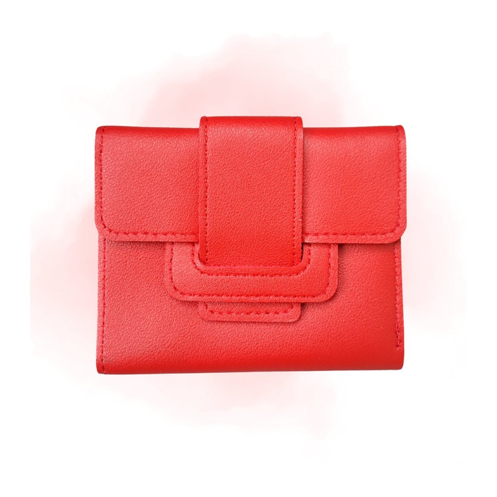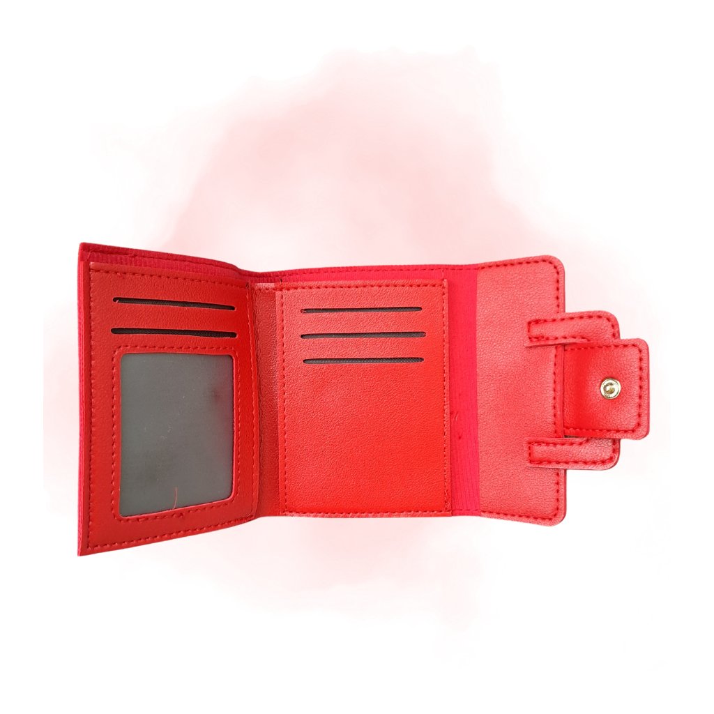 Peněženka červená. Na uložení bankovek a karet. Nemá na mince. Zavírá se na cvok.
