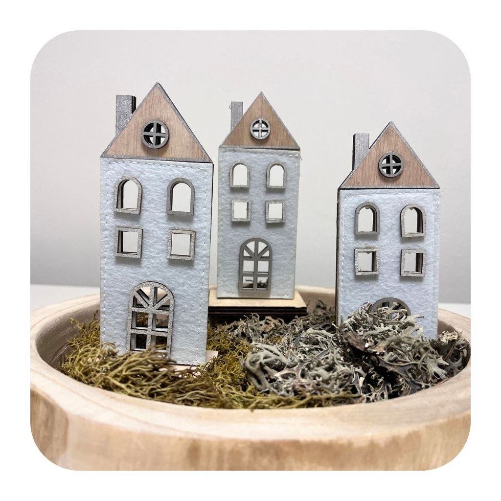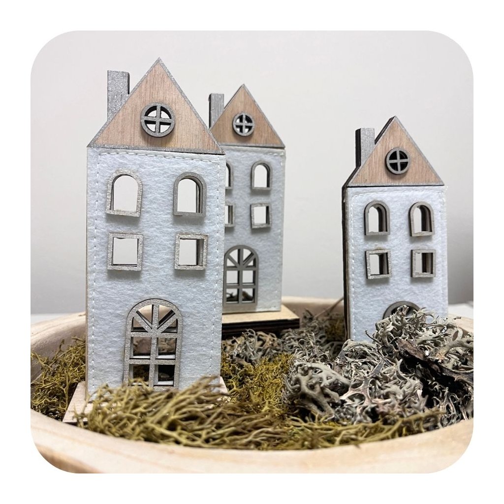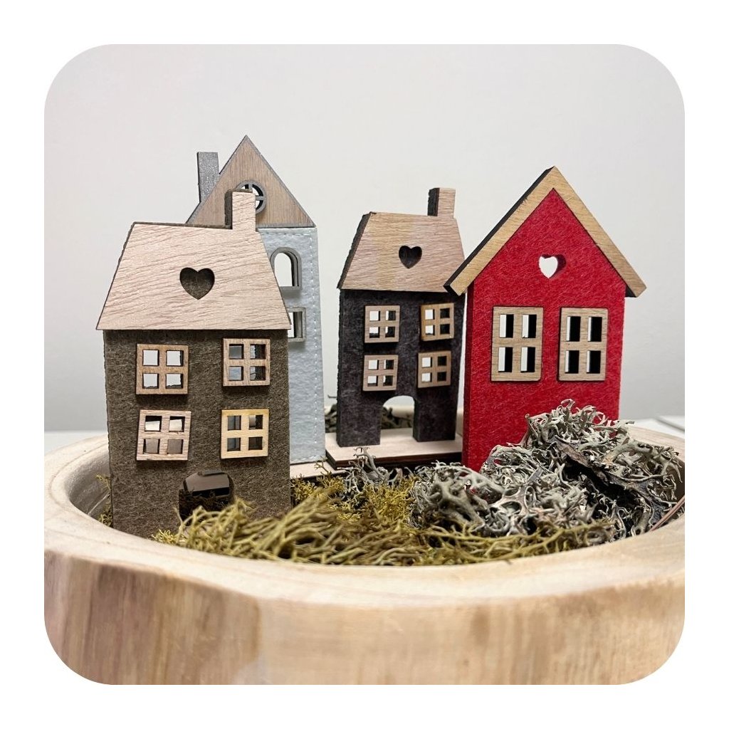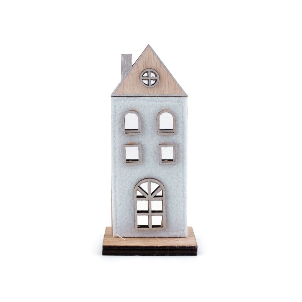 Dekorační domeček můžete postavit na parapet okna, polici nebo třeba krbovou římsu. Stylově doplní různá aranžmá. Materiál je v kombinaci dřeva a filcu.