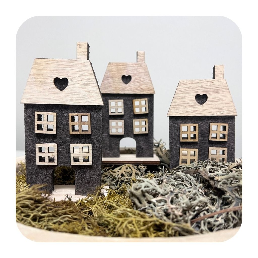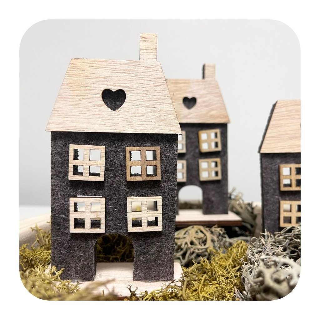 Dekorační domeček můžete postavit na parapet okna, polici nebo třeba krbovou římsu. Stylově doplní různá aranžmá. Materiál je v kombinaci dřeva a filcu.