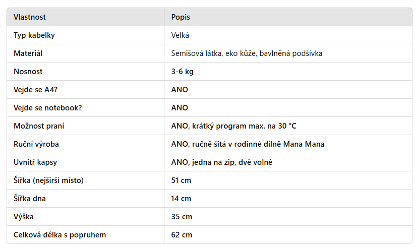 Díky měkkému, ale odolnému materiálu pojme spoustu věcí a skvěle se hodí na každý den – do práce, školy i na volný čas. Unese běžnou zátěž do 3 kg, a když je potřeba, zvládne i 5–6 kg.