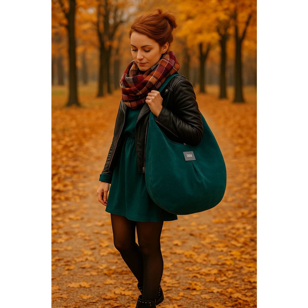 Tato elegantní kabelka z eko sametu je nejen krásná, ale i praktická. Uvnitř najdete pevnou bavlněnou podšívku a tři kapsy – dvě otevřené a jednu na zip. Pohodlný popruh z eko kůže umožňuje nošení přes rameno i v ruce.