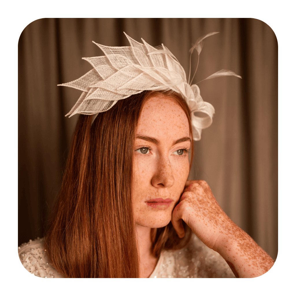 Neobvykle stylový a vkusný fascinátor. Upevňovaný na čelence. Krásně se na hlavě prezentuje. Bude skvělým doplněním elegantních stylizací.