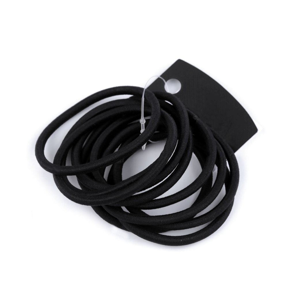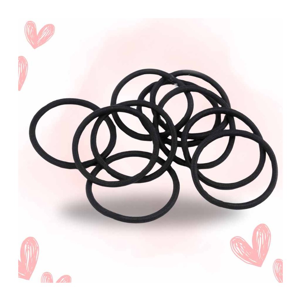 Gumičky do vlasů, které výborně drží na hrubých i jemných vlasech. Jsou kulaté a pevné. Jeden svazek obsahuje 10 gumiček. Vnitřní průměr gumičky je cca 4,5 cm, maximální délka obvodu po roztažení je cca 28 cm.