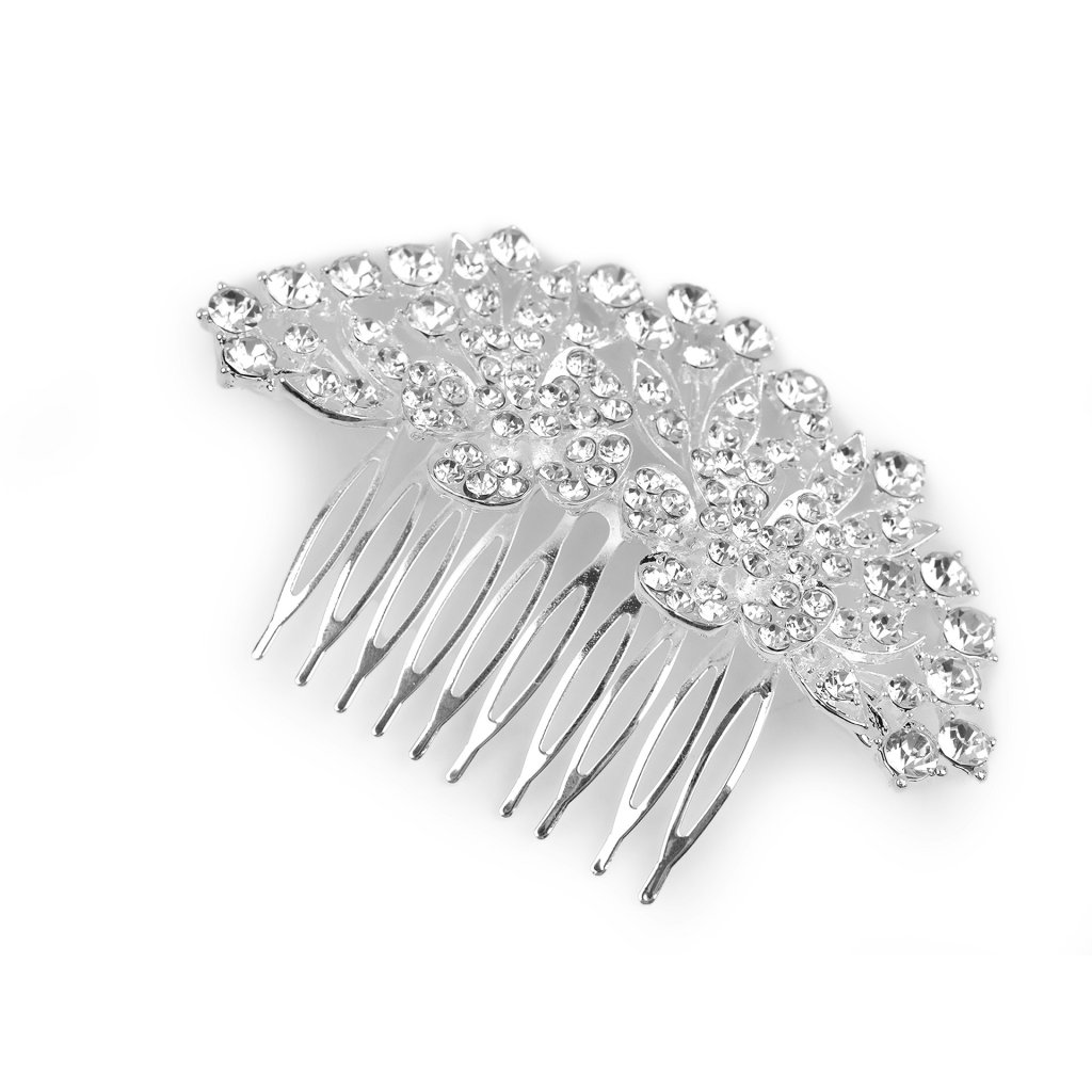 Kovovým hřebenem do vlasů ozdobeným broušenými kamínky oslníte na každé slavnostní události, protože se třpytí už z velké dálky. Je vhodný do společenských účesů i pro nevěsty v jejich den. Samotný hřeben je rovný, ozdoba je jemně prohnutá. V účesu hřeben pevně drží.