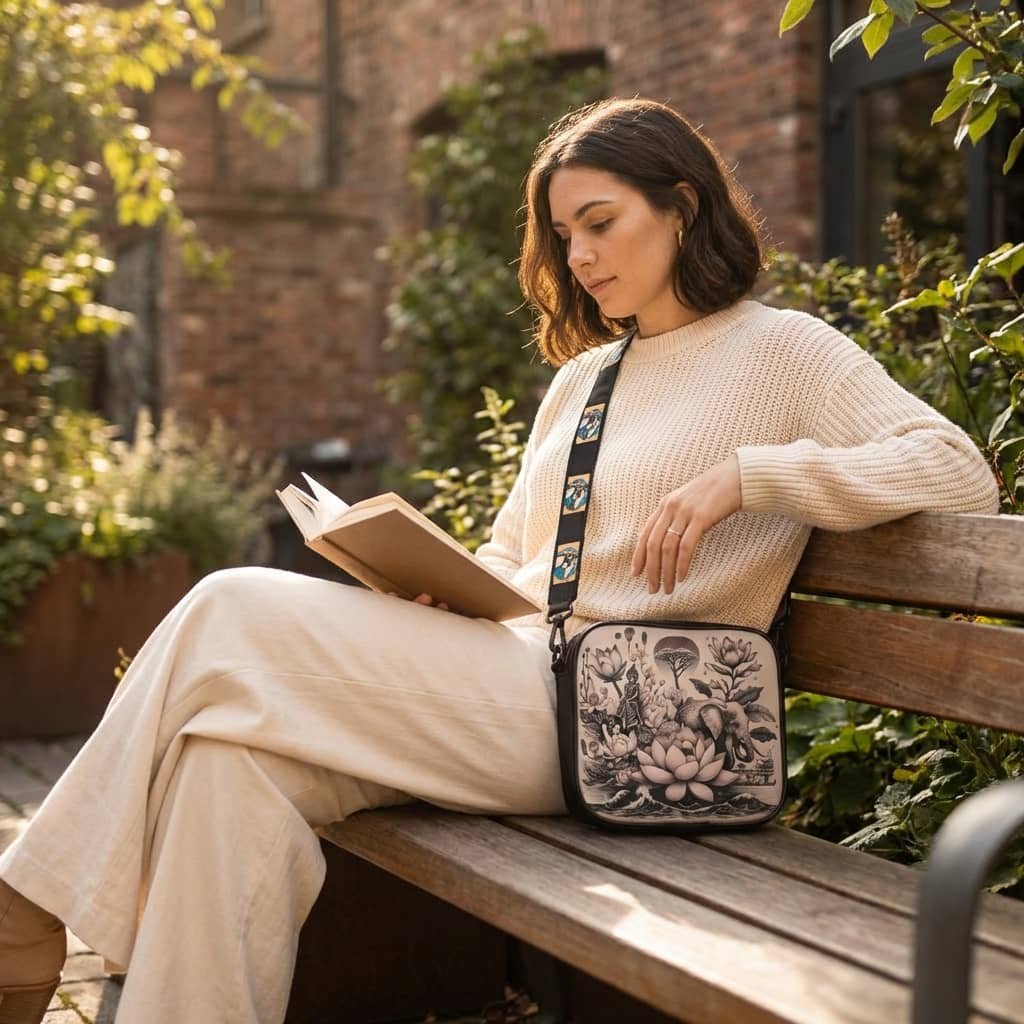 Taška přes rameno s jedinečným potiskem je vyrobena v Německu.