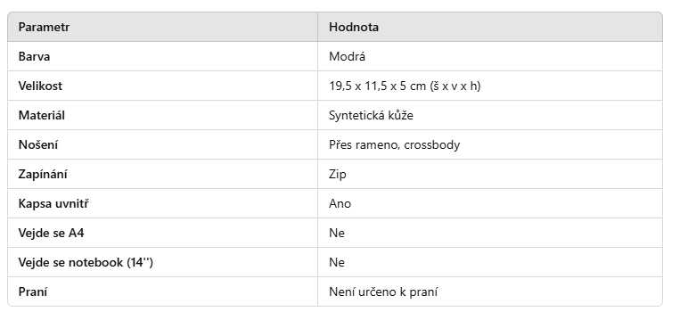 Hledáte něco krásného a praktického? Seznamte se s malou crossbody kabelkou Santiana. Je vyrobená z jemné a měkké syntetické kůže, takže je příjemná na dotek i pohled. Když otevřete zip, objeví se tři praktické kapsy na vaše drobnosti. Ať už potřebujete schovat klíče, rtěnku nebo telefon, vše má své místo. Prostřední kapsička se dá zapnout samostatným zipem pro extra bezpečnost. Díky dlouhému, látkovému a nastavitelnému popruhu můžete kabelku nosit přes rameno nebo do kříže, přesně jak se vám líbí. 🎒