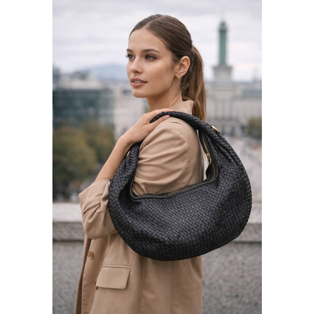 Černý elegantní design se zlatými detaily dodává kabelce šmrnc, který skvěle doplní jakýkoli outfit. Díky nastavitelnému popruhu ji můžete pohodlně nosit přes rameno nebo v ruce – stylově a pohodlně na každou příležitost.