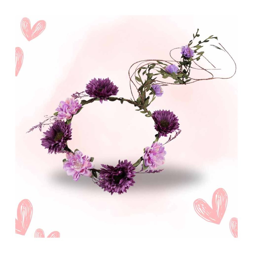 Můžete jej nosit jako ozdobu vlasů nebo použít k dekoračním účelům. Květy vypadají jako živé. Jsou připevněné k drátěné kostře, která je obalená papírem a ovinutá prýmkem s lístečky. Díky drátěnému základu můžete věneček tvarovat, velice příjemně se nosí.