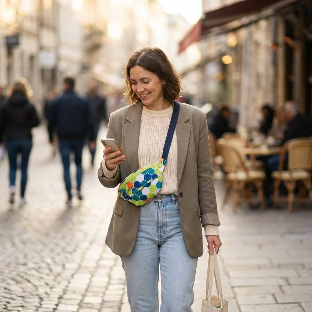 Ledvinky se nosí v pase, přes kyčle nebo dozadu. Je ušitá z eko kůže. Uvnitř je pevná látka v černé barvě, a kapsa na zip. Nastavitelný popruh umožňuje, aby se přizpůsobila postavě, maximální délka je 110 cm. Ideální je na nošení na dovolené, na kole, kolečkových bruslí a u dalších aktivit. Ledvinky jsou také velmi trendy na festivaly a dokonce i do klubu.