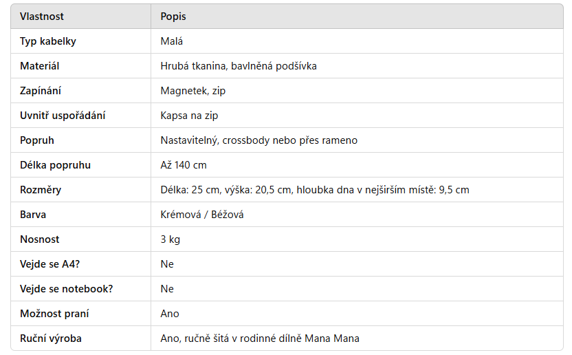💗 Kabelka, kterou si zamiluješ! Praktická, stylová a ručně šitá v rodinné dílně Mana Mana. Ideální na každodenní nošení i speciální příležitosti. Díky chytrému členění a pohodlnému popruhu si ji snadno přizpůsobíš podle svých potřeb.