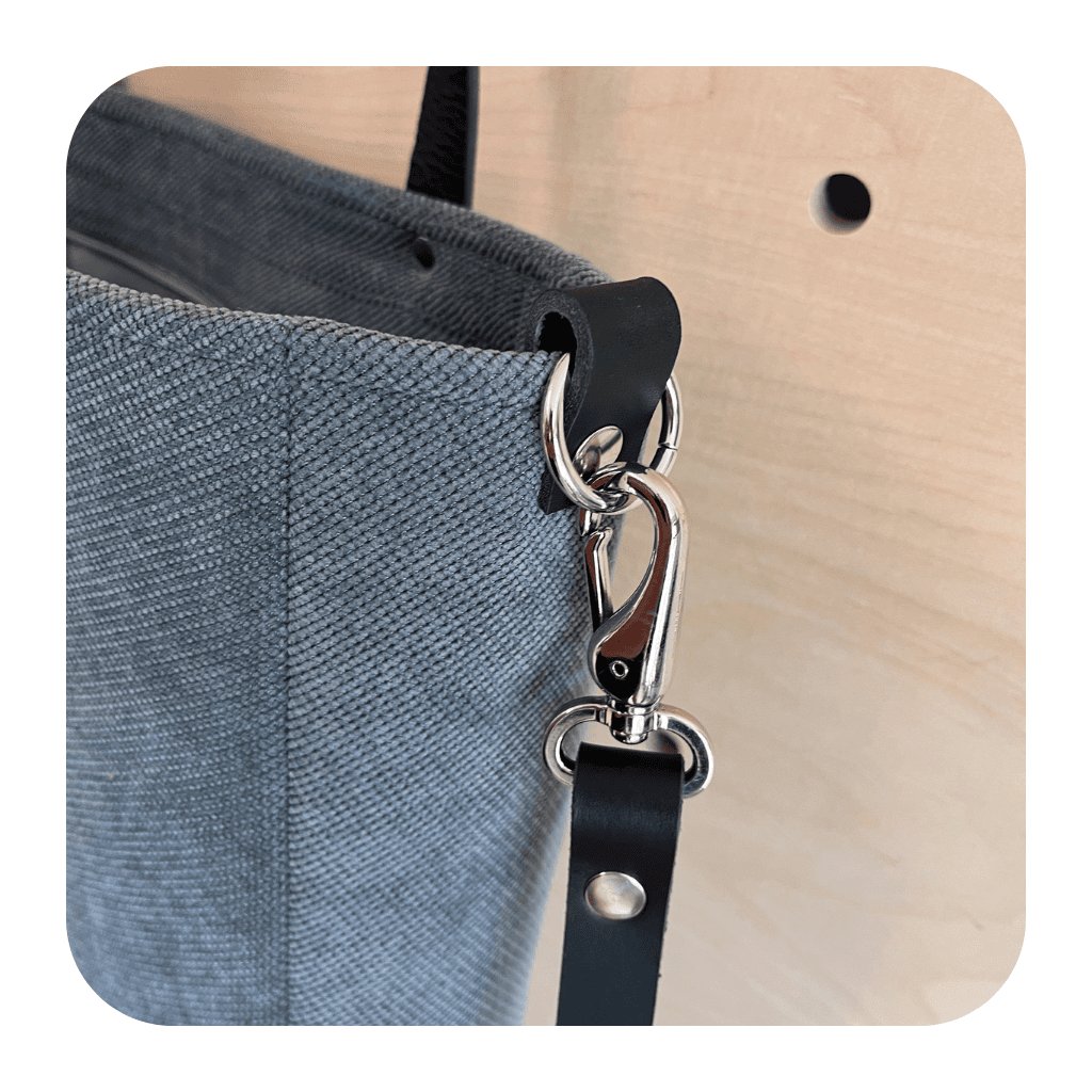 Kabelka má pevný popruh z krásné kůže. Je přidělána na čtyřech nýtech (uších). Je možné ji nosit volně přes rameno nebo nosit diagonálně (crossbody).