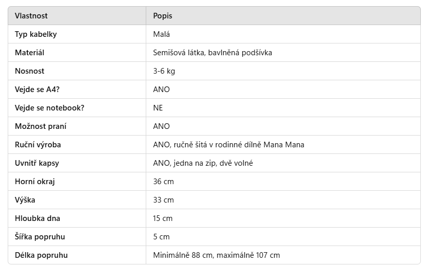 💗 Kabelka, kterou si zamiluješ! Praktická, stylová a ručně šitá v rodinné dílně Mana Mana. Ideální na každodenní nošení i speciální příležitosti. Díky chytrému členění a pohodlnému popruhu si ji snadno přizpůsobíš podle svých potřeb.