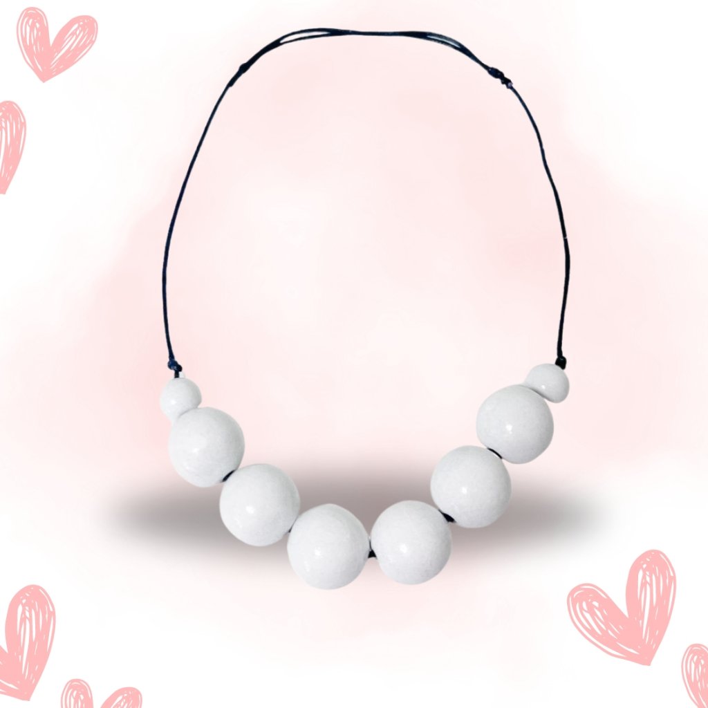 Náhrdelník Dřevěné Korále - Bílé