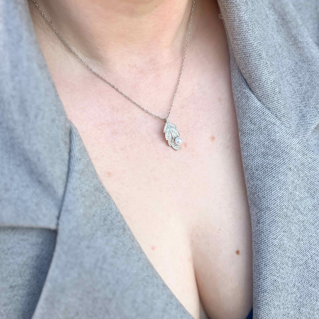 Náhrdelník z nerezové oceli s broušenými kamínky a perlou - List