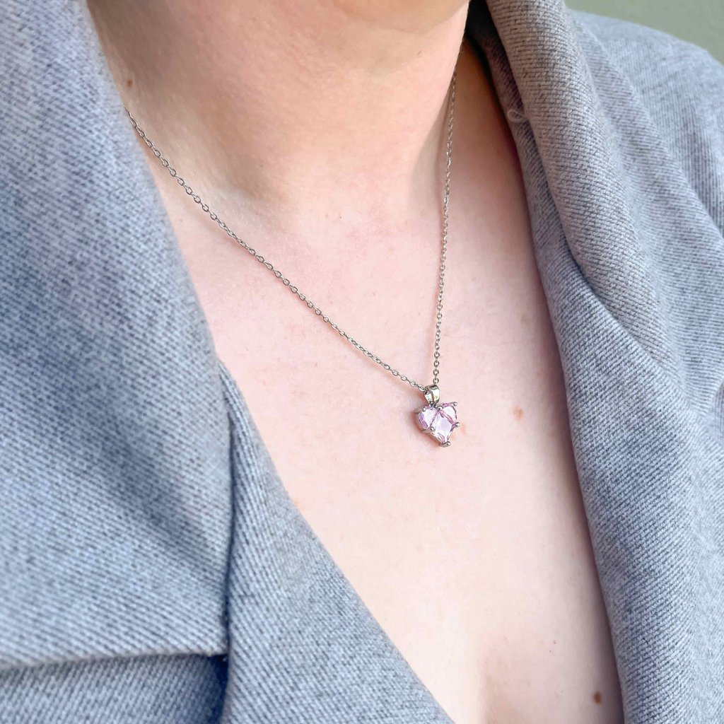 Náhrdelník z nerezové oceli s broušenými kamínky Srdíčko - růžová