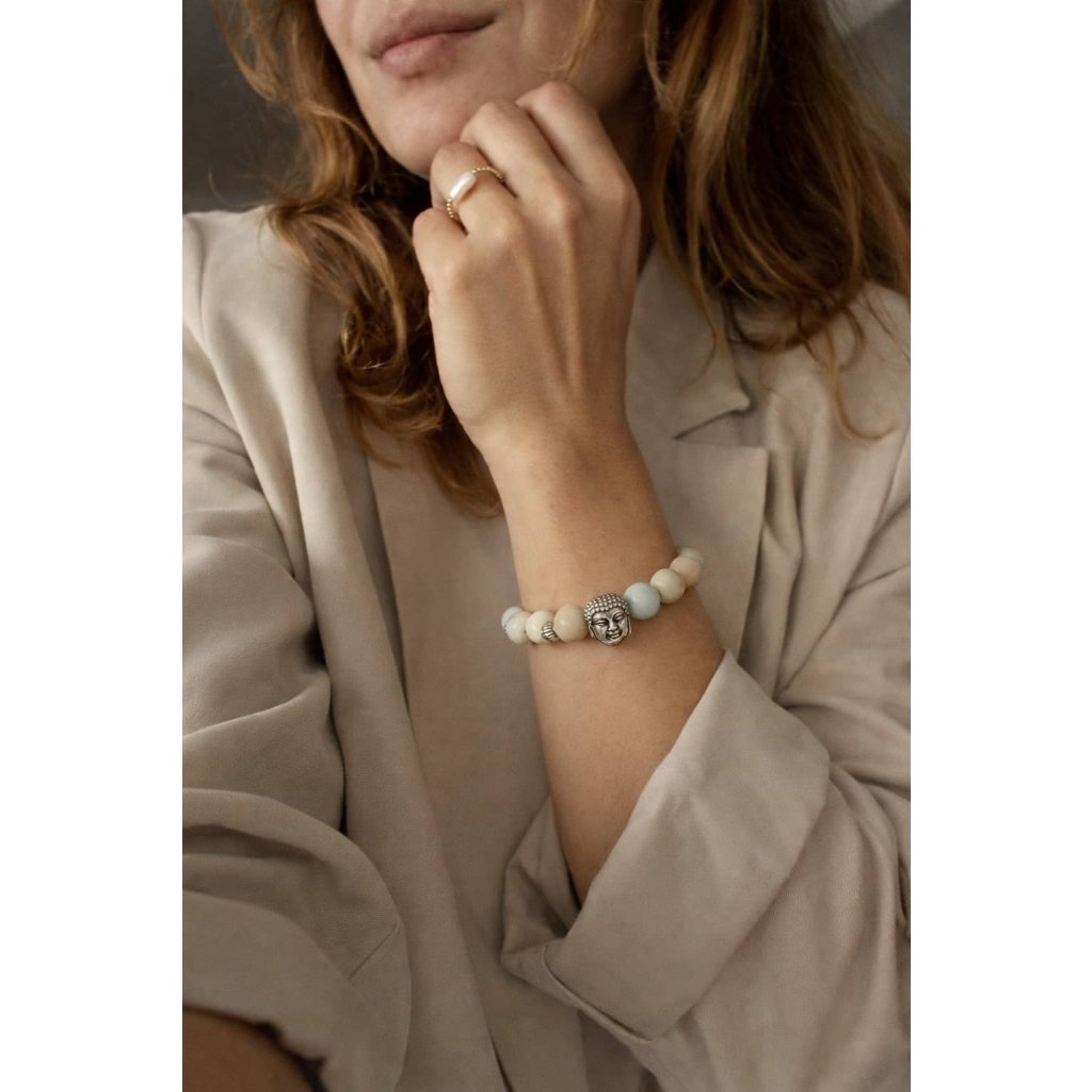 Pružný náramek s amazonitem ocení milovníci východních kultur. Je velice všestranný, vhodný na každodenní nošení. Skládá se z korálků amazonitu a doplňuje ho jeden korálek s buddhou.