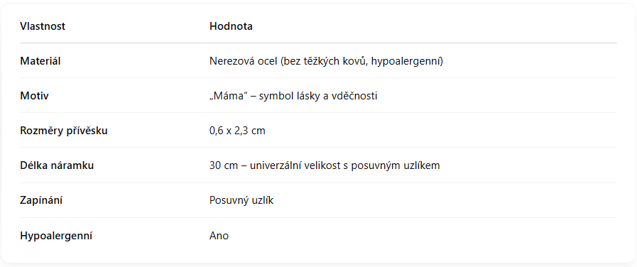 Vyroben z kvalitní nerezové oceli, odolný, krásný a vhodný i pro citlivou pokožku – stejně jako mateřská láska, i on vydrží dlouho a stále bude vypadat skvěle.