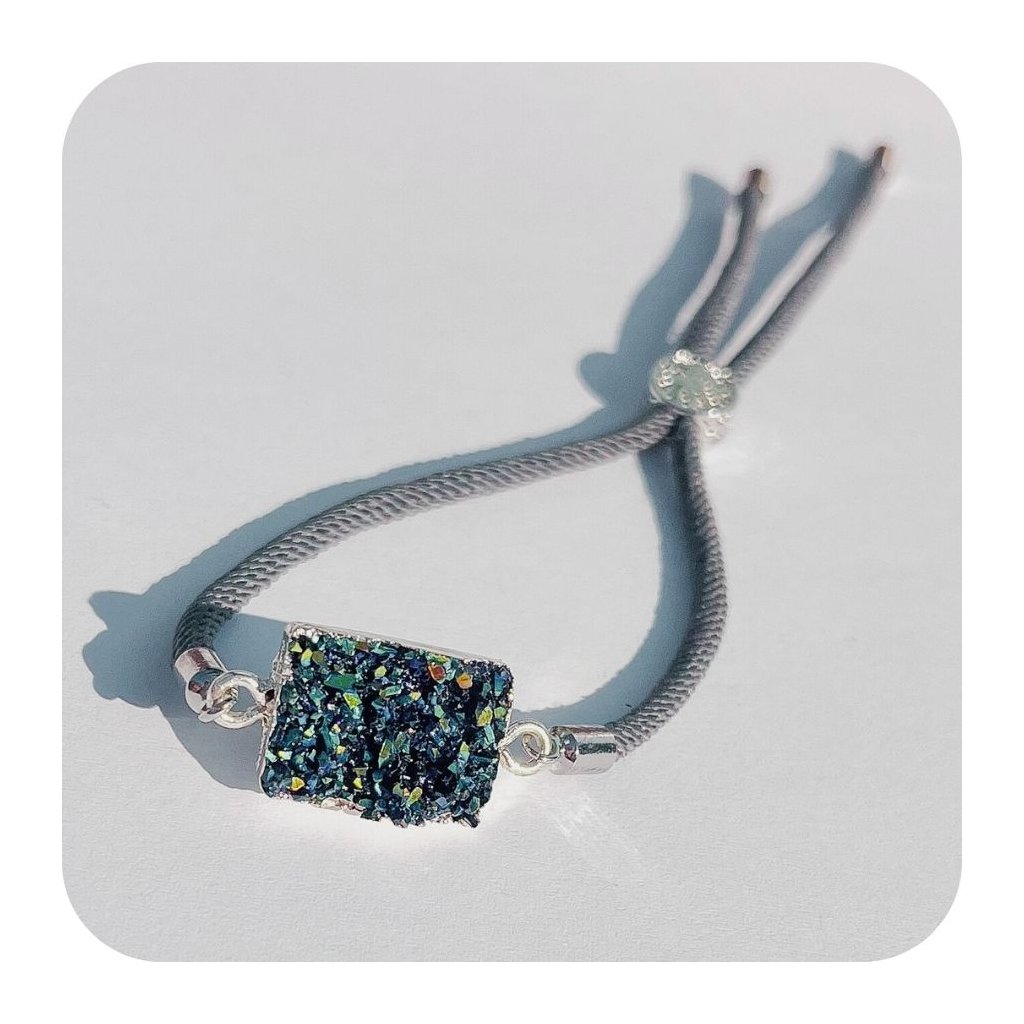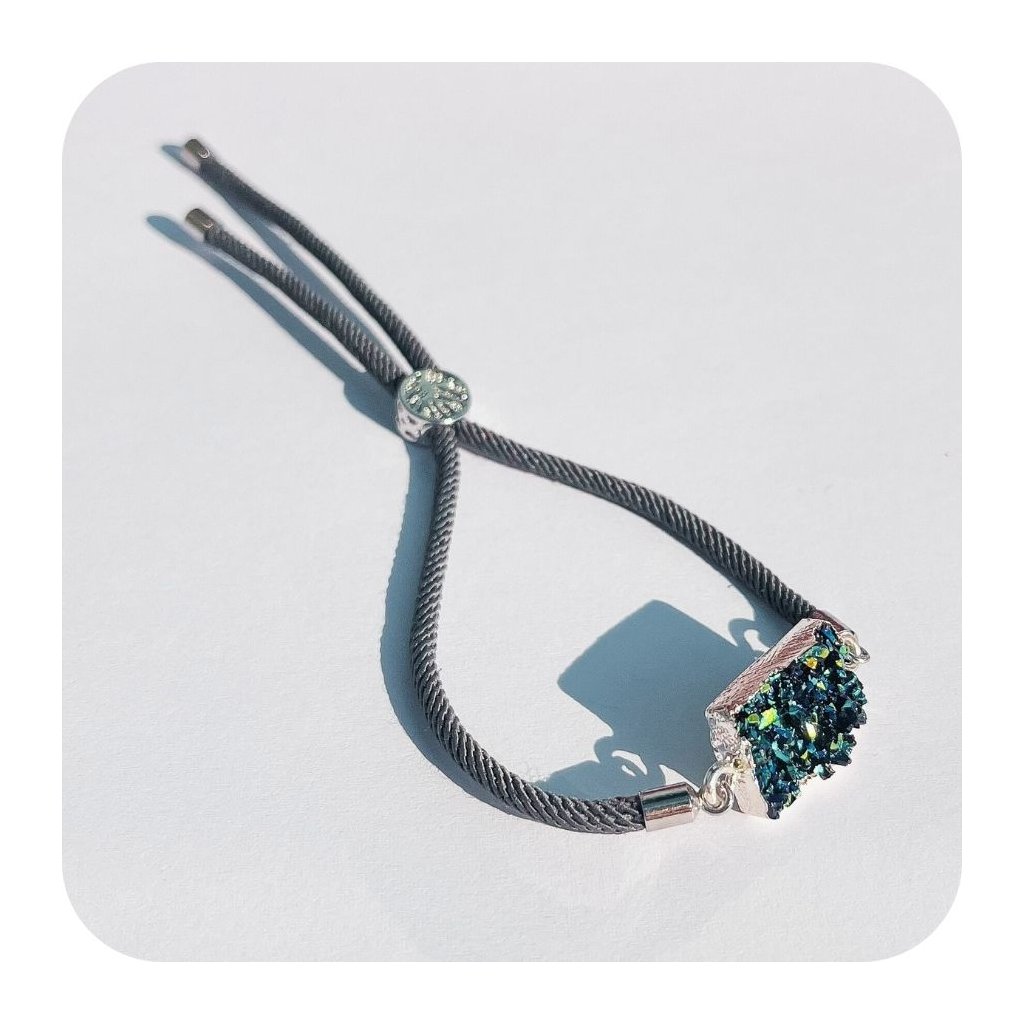 Stylový náramek na provázku zdobený umělým kamenem imitující drahý kámen.