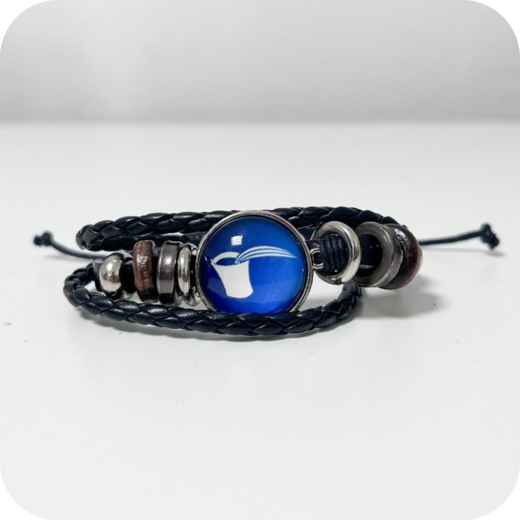 Víceřadý náramek se znamením zvěrokruhu využijete k džínám a ležérnímu stylu oblékání. Zapínání stahovací tkaničkou dolaďuje styl celého náramku.Náramek může být delší nebo kratší. Hodí se pro ženy i muže - unisex.