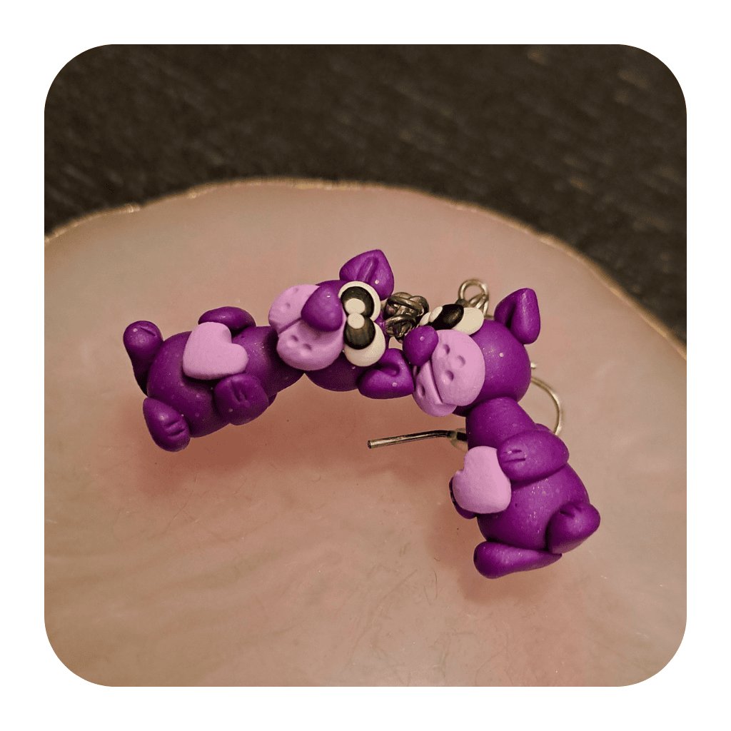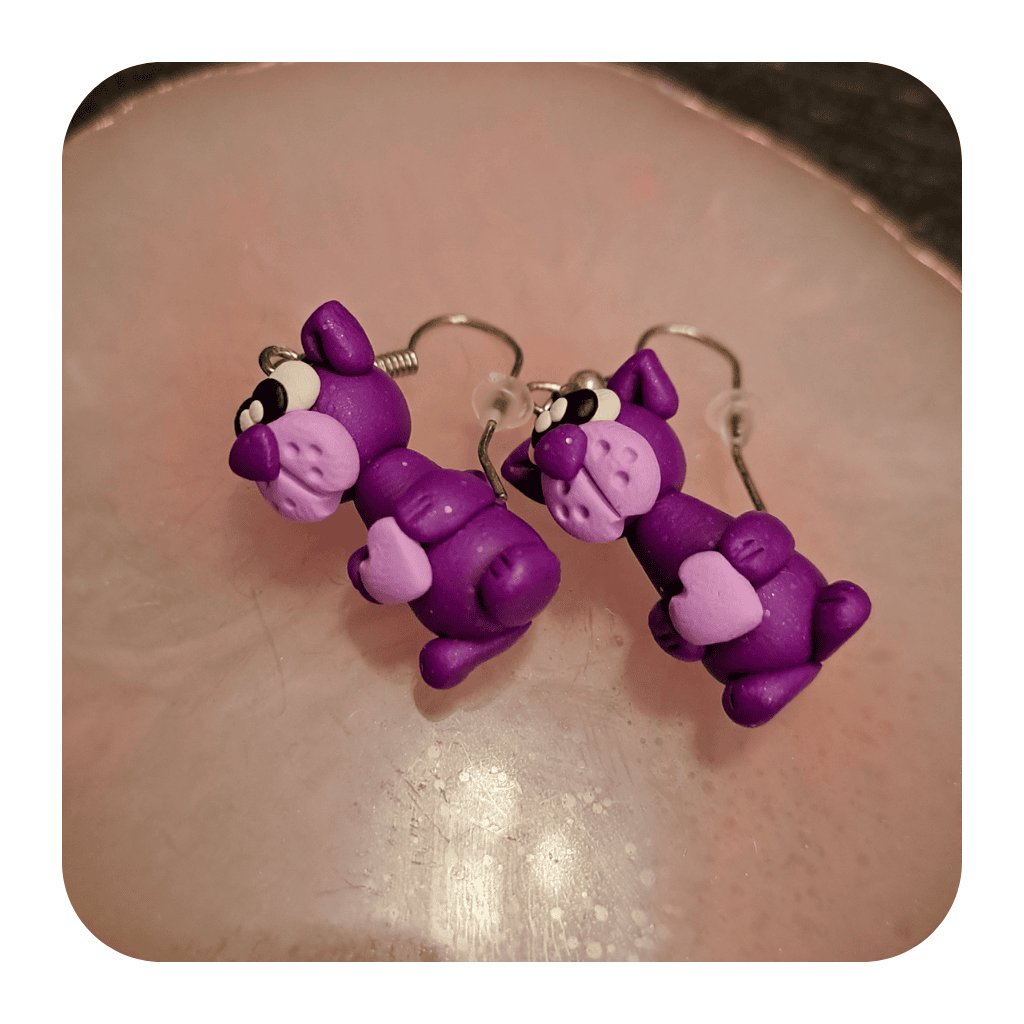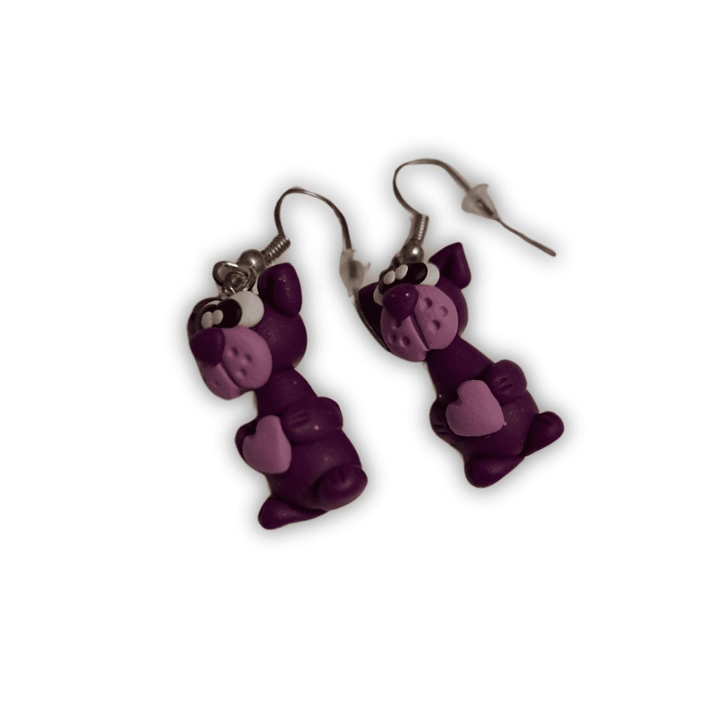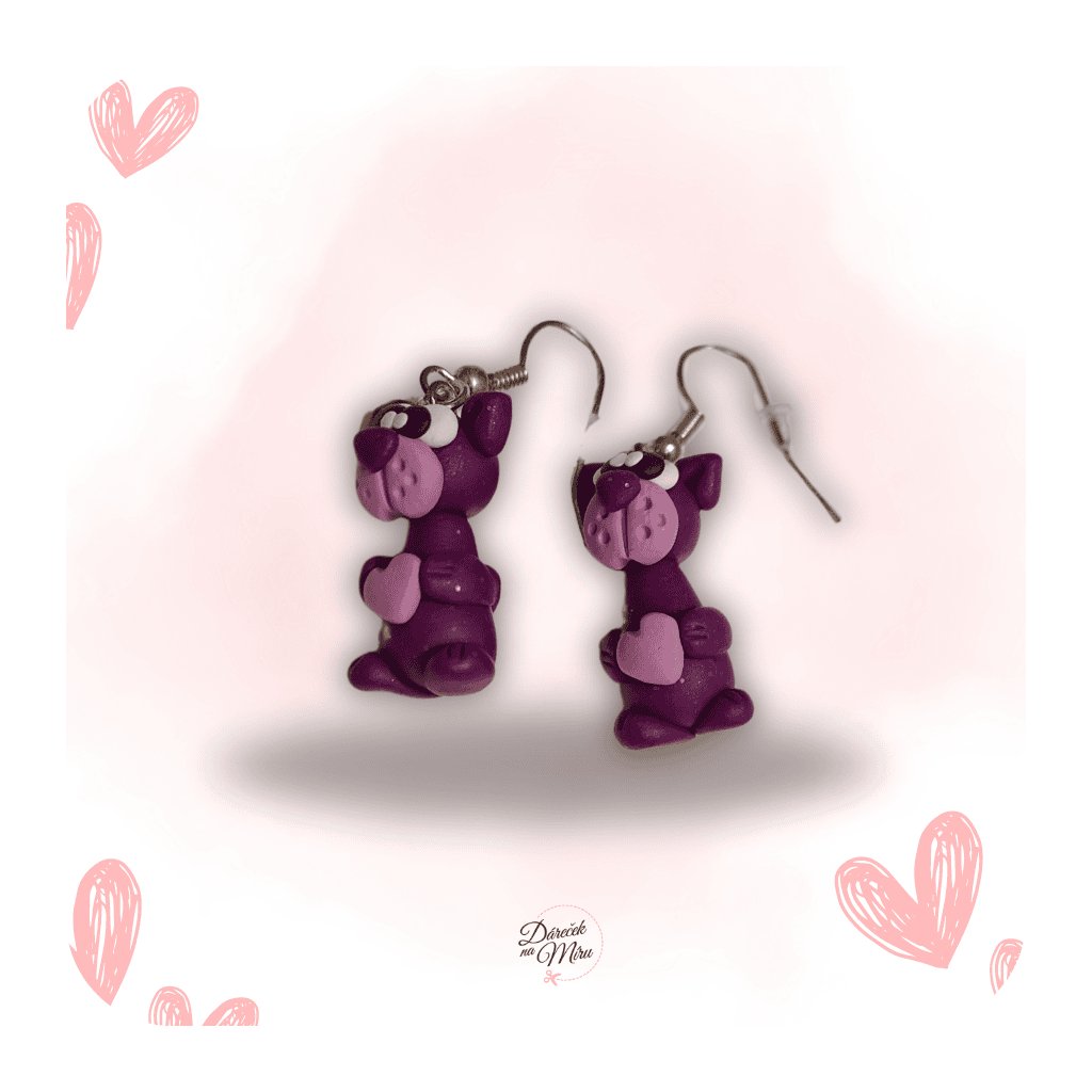 Náušnice Pejsci se srdíčky Fialoví