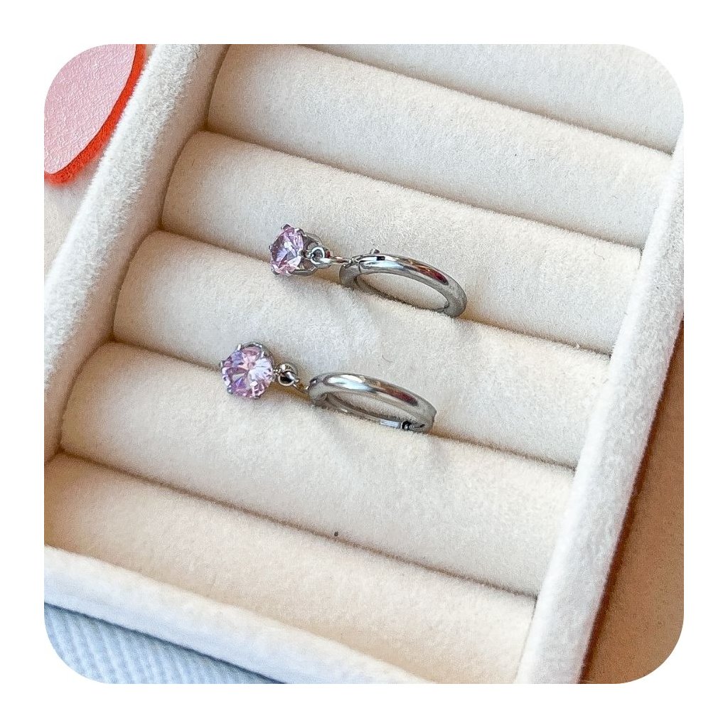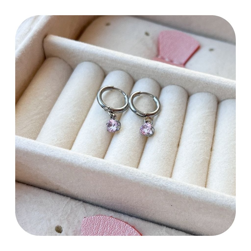 Elegantní náušnice z chirurgické oceli ve tvaru kruhů, zdobené jemným růžovým zirkonem. Díky lehké hmotnosti 1,05 g jsou pohodlné na nošení po celý den. Ocelový materiál zajišťuje dlouhou životnost a odolnost šperku, zatímco růžový zirkon přidává nádech ženské elegance. Ideální doplněk pro každodenní nošení i speciální příležitosti.