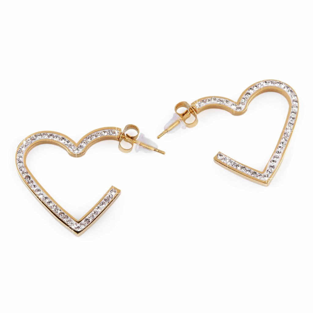 Elegantní náušnice ve tvaru srdce z nerezové oceli s jemně broušenými kamínky, které krásně odrážejí světlo. Vynikají svým originálním designem a jsou skvělou volbou jak pro každodenní nošení, tak pro slavnostní příležitosti. Díky kvalitnímu materiálu jsou odolné, hypoalergenní a pohodlné i při delším nošení. Stylový detail, který potěší oko i vydrží roky.