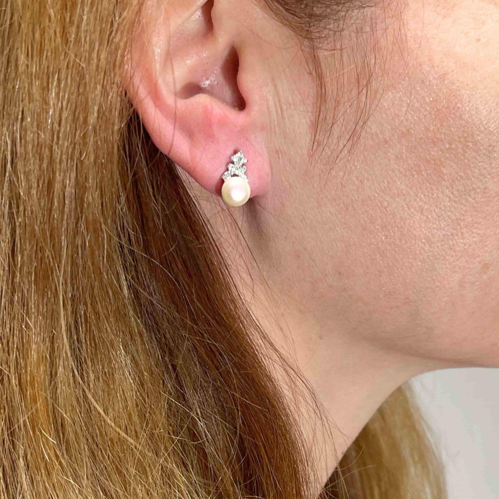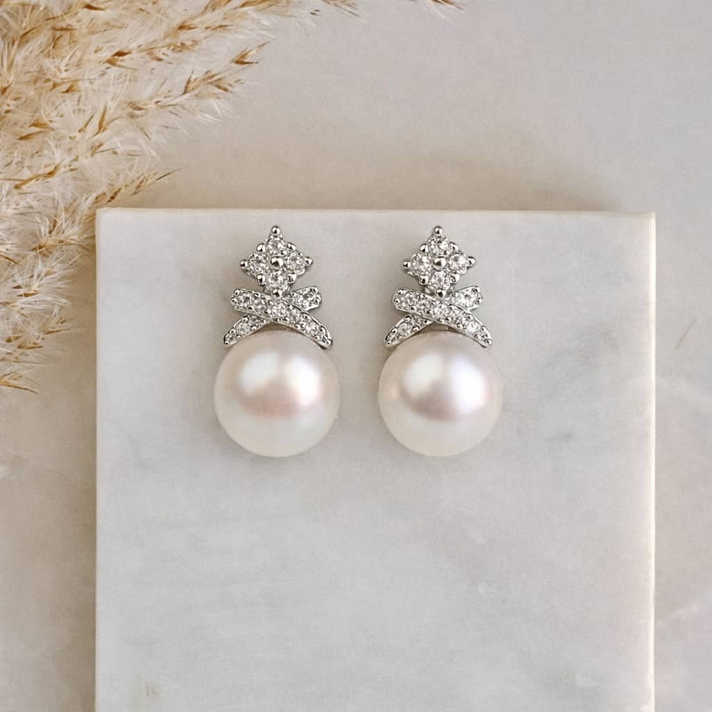 Náušnice Stříbrné s říční perlou a zirkony IV.