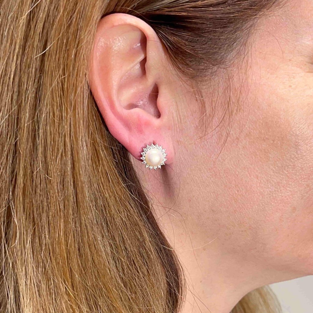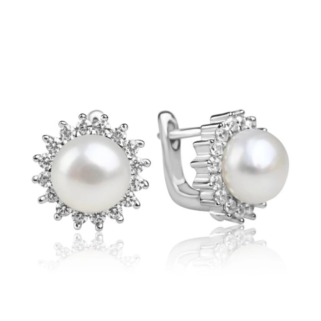 Náušnice Stříbrné s říční perlou a zirkony