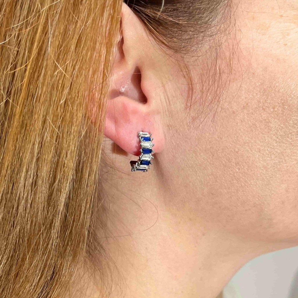 Náušnice z nerezové oceli kruhy s broušenými kamínky - Modrá