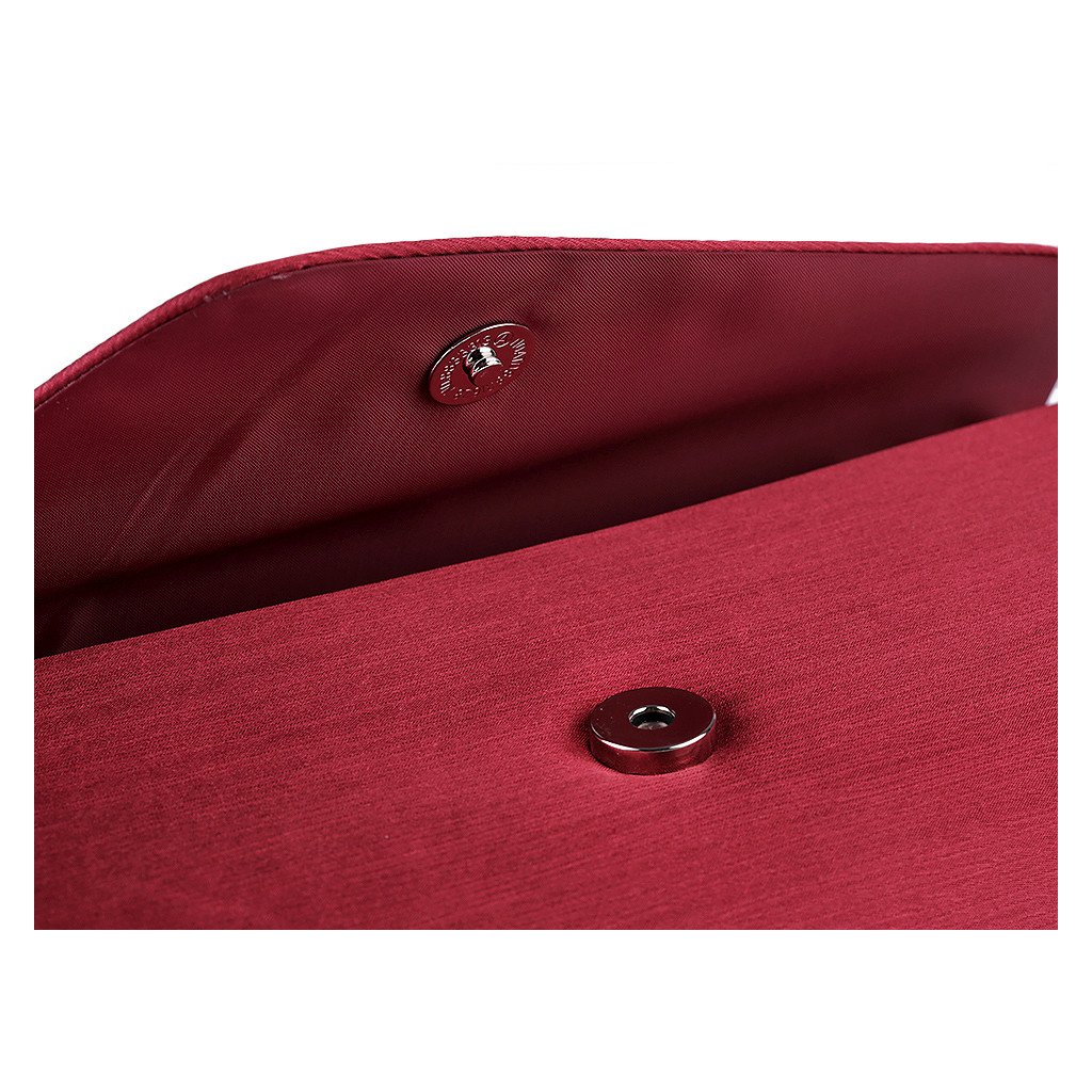 Přední strana má atypický tvar. Vyztužená kabelka má uvnitř polyesterovou podšívku a malou kapsičku na drobnosti. Zapíná se na magnet. Ke kabelce patří odepínatelný řetízek. Psaníčko můžete nosit s řetízkem přes rameno nebo bez něj jen tak v ruce.