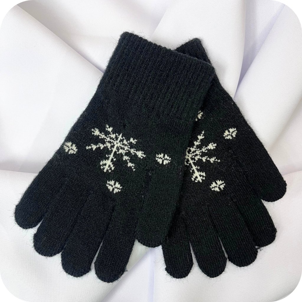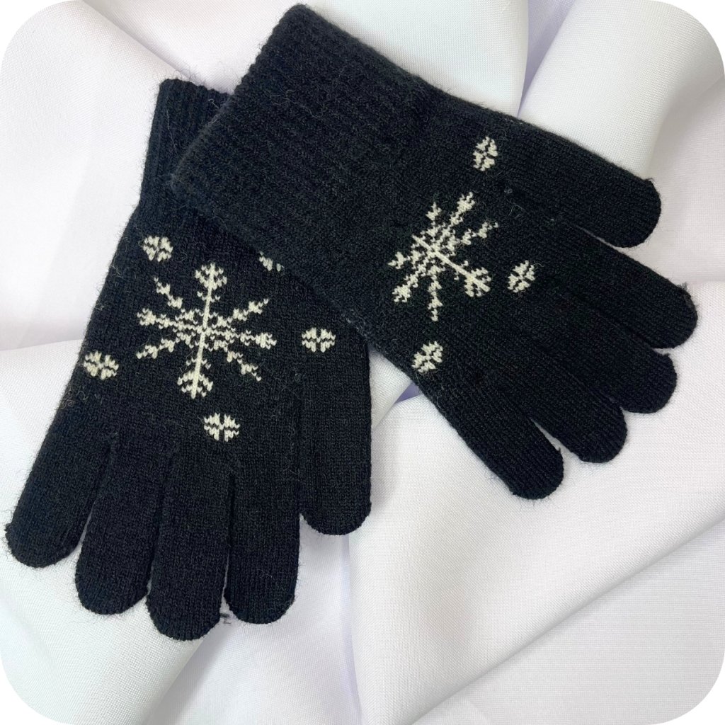 Rukavice zdobené zimním motivem.