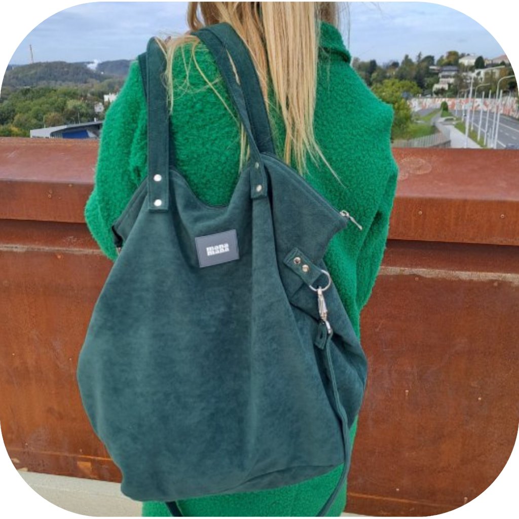 Pevný popruh a čtyři nýty (uši) z eko semiše zajišťují nejen stabilitu, ale i pohodlí při nošení. Kabelku můžete nosit volně přes rameno nebo si ji upravit pro nošení diagonálně (crossbody), což vám umožní mít volné ruce a pohodlí během celého dne.