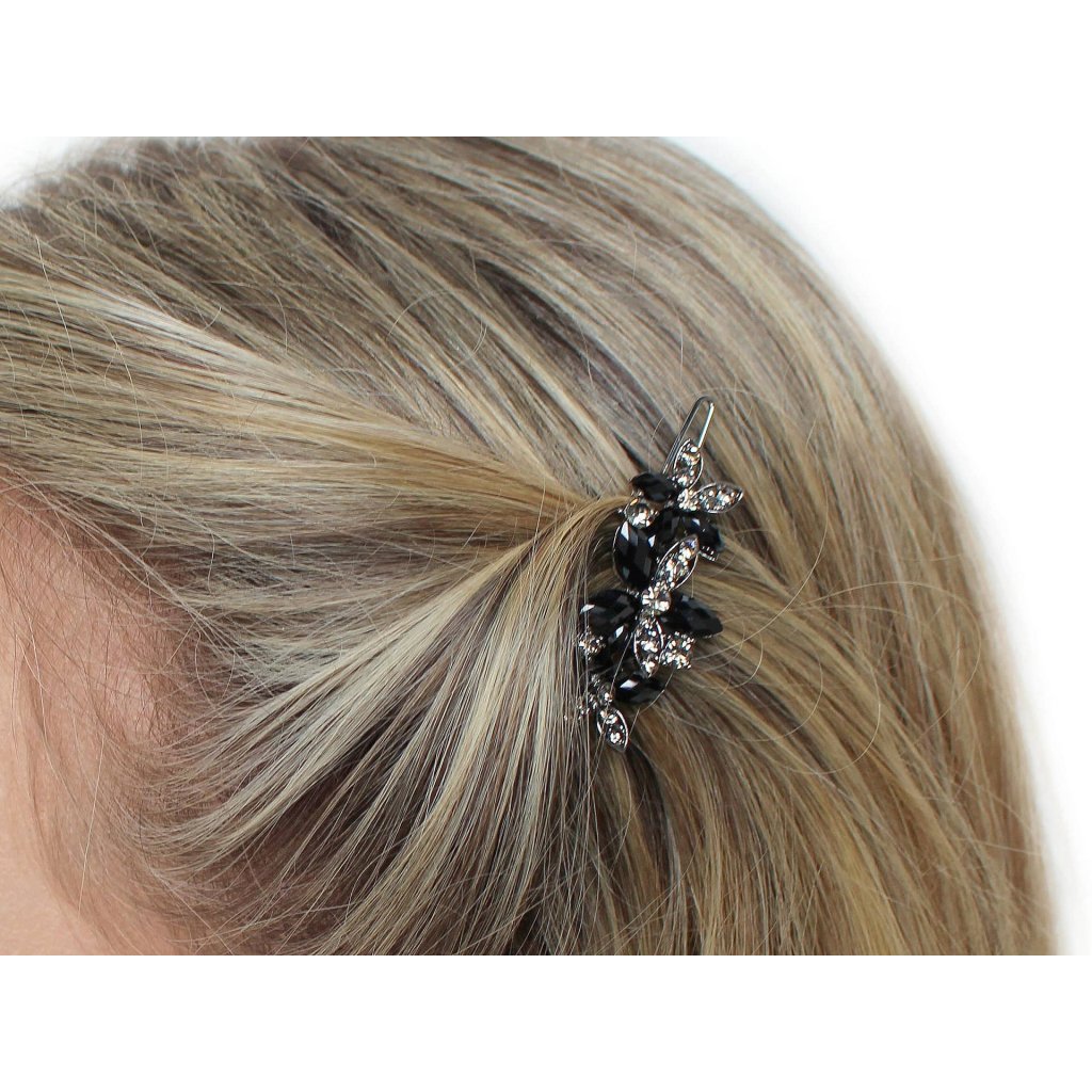 Elegantní sponka do vlasů s broušenými kamínky ve tvaru květů je dokonalým doplňkem pro oživení každého účesu. Je vyrobená z kvalitního bižuterního kovu, na zadní straně má malé zoubky, ve vlasech dobře drží. Využijete ji na různé společenské akce, ale také na běžné nošení, zajímavě ozdobí váš účes.