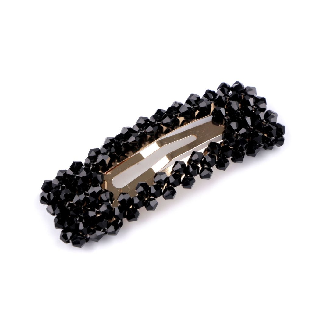 Sponka do vlasů pukačka s broušenými korálky - Černá
