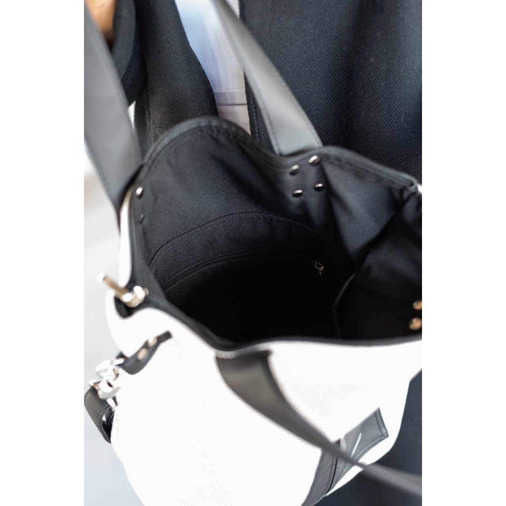 Taška má pevný popruh. Je přidělána na čtyřech nýtech (uších) z eko-kůže. Je možné ji nosit volně přes rameno nebo v ruce nebo crossbody nošení.