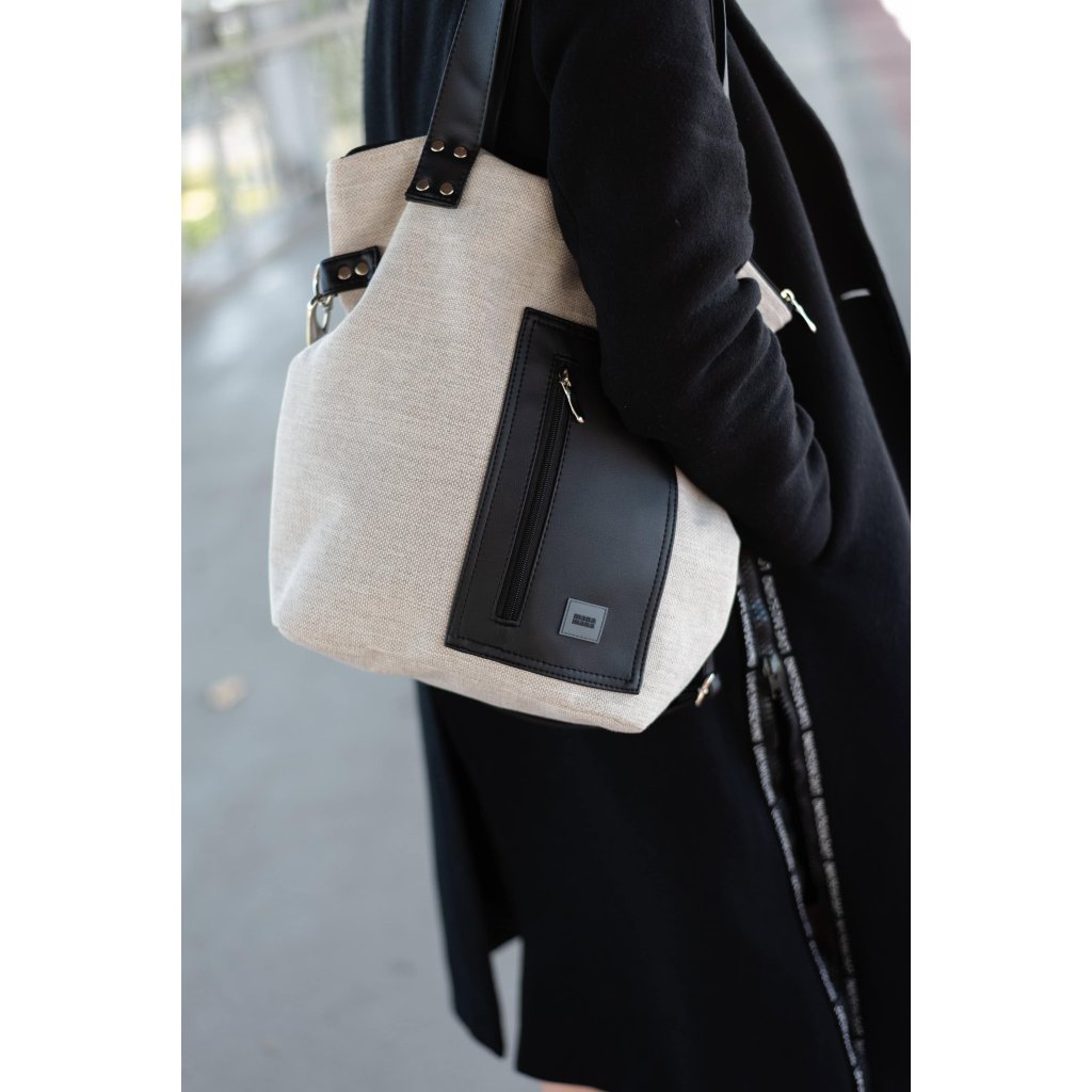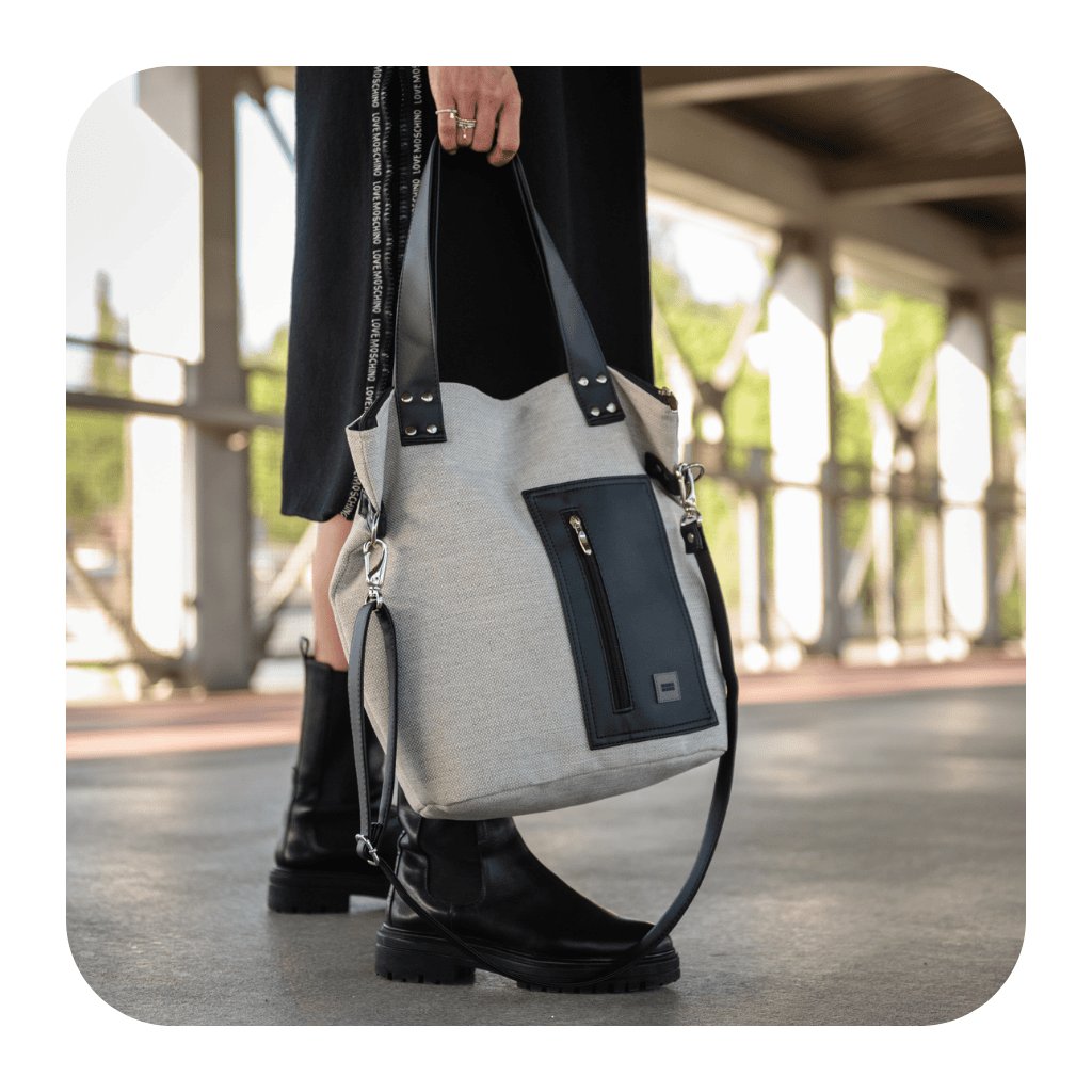 Moderní kabelka, která je ideální pro každodenní nošení. Vyrobena z odolné eko kůže a hrubé tkaniny.