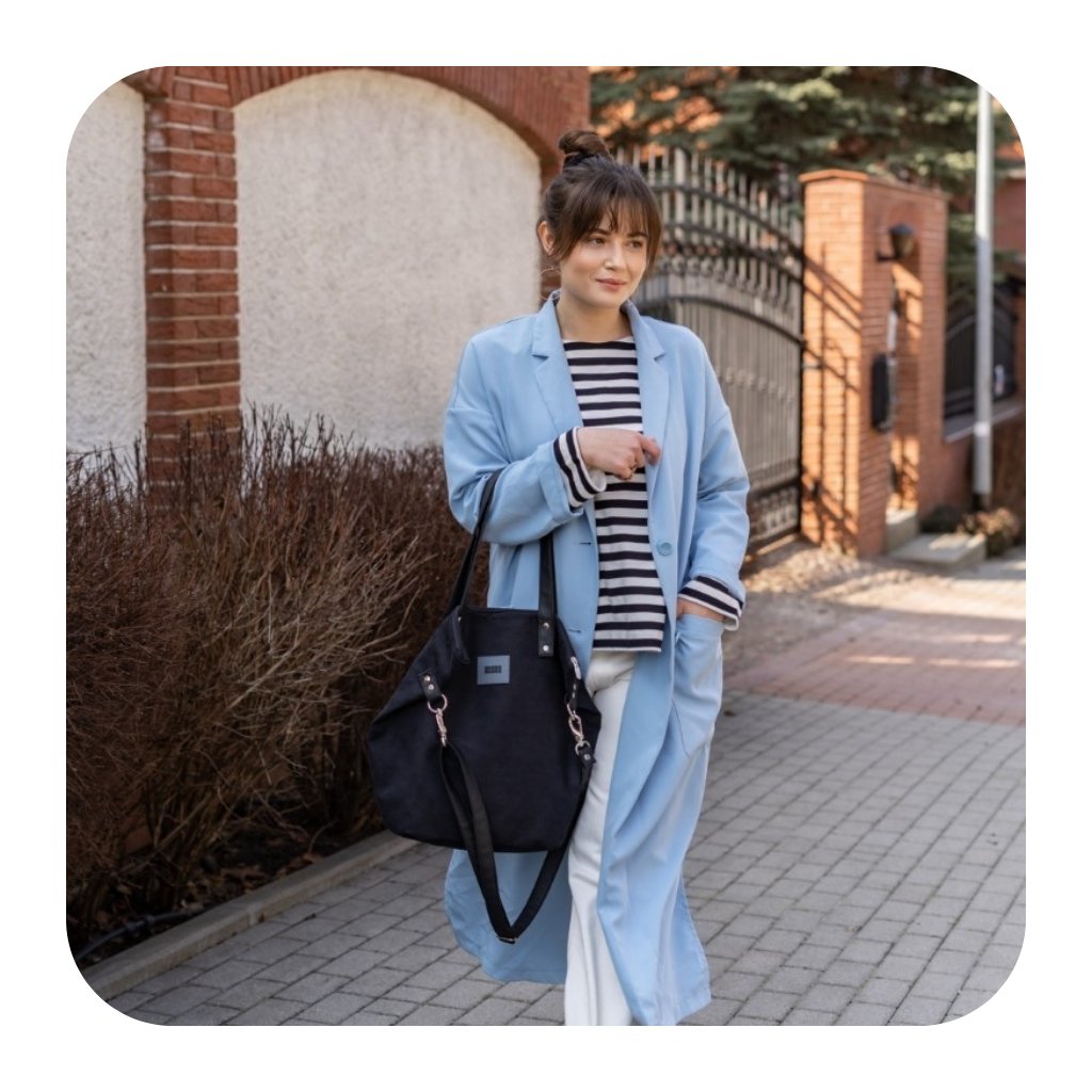 Je možné ji nosit volně přes rameno nebo si nastavitelným popruhem ze stejného materiálu upravit tašku pro nošení diagonálně (crossbody).