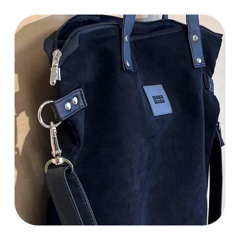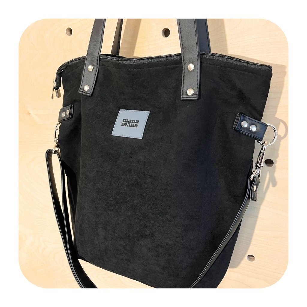 Střední kabelka z eko semiše v barvě černé.