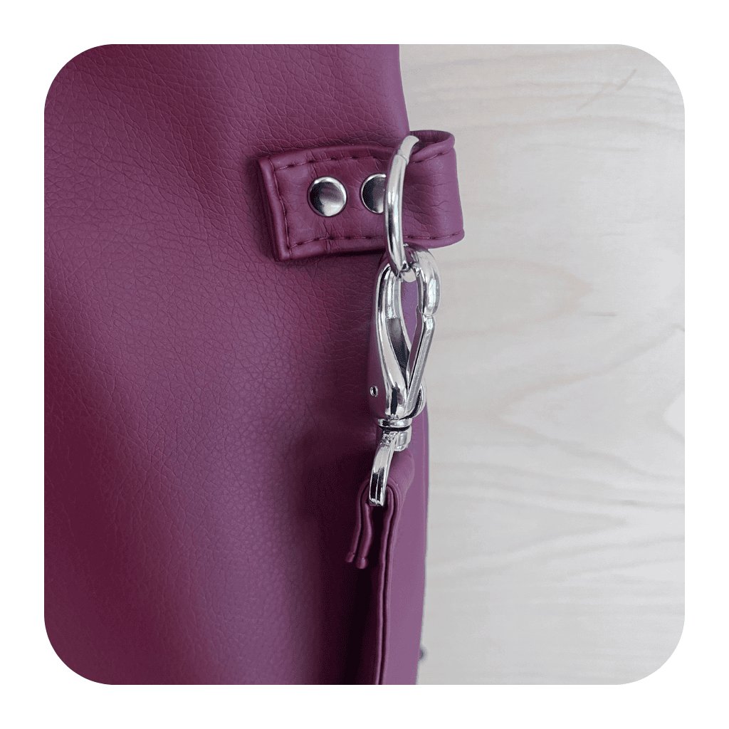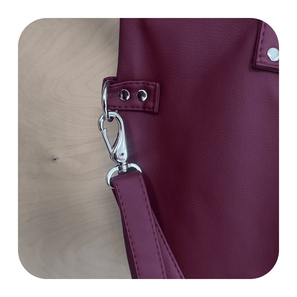 Pevný popruh a čtyři nýty (uši) ze stejného materiálu zajišťují nejen stabilitu, ale i pohodlí při nošení. Tašku můžete nosit volně přes rameno nebo si ji upravit pro nošení diagonálně (crossbody), což vám umožní mít volné ruce a pohodlí během celého dne.