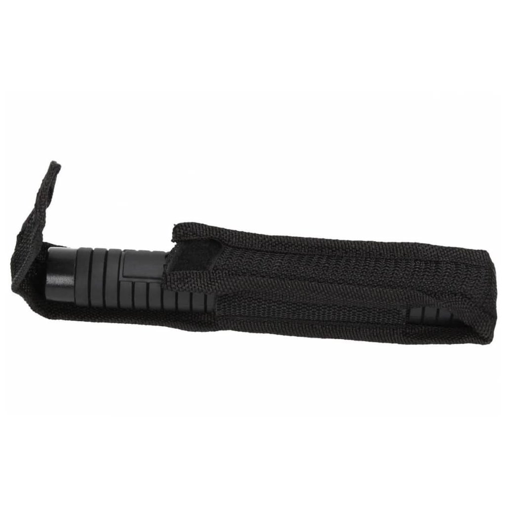 Skládací teleskopický obušek POLICE s pouzdrem. Teleskopický obušek se skládá ze tří ocelových trubek zasunutých v sobě, nejmenší (přední) trubka prochází ostatními až do koncovky obušku kde je její konec jištěn třením o perko proti samovolnému otevírání obušku. Prudkým švihnutím se obušek rozloží do plné délky, zde dojde k tzv. frikční aretaci trubek, kdy se do sebe zaseknou kuželové plochy na koncích trubek. Složení se provádí rychlým úderem volně obušku volně uchopeného za konec kolmo k tvrdému povrchu. Pokud obušek nelze složit, několikrát důrazně poklepeme vodorovně obuškem o tvrdou podložku. Tím se kužely uvolní a následně můžeme obušek zavřít.