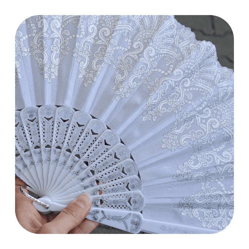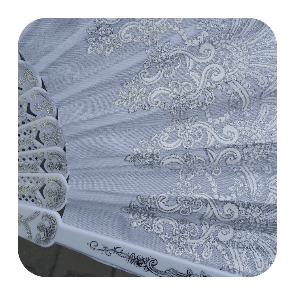 Vějíř textilní s květy Bílý se zdobením