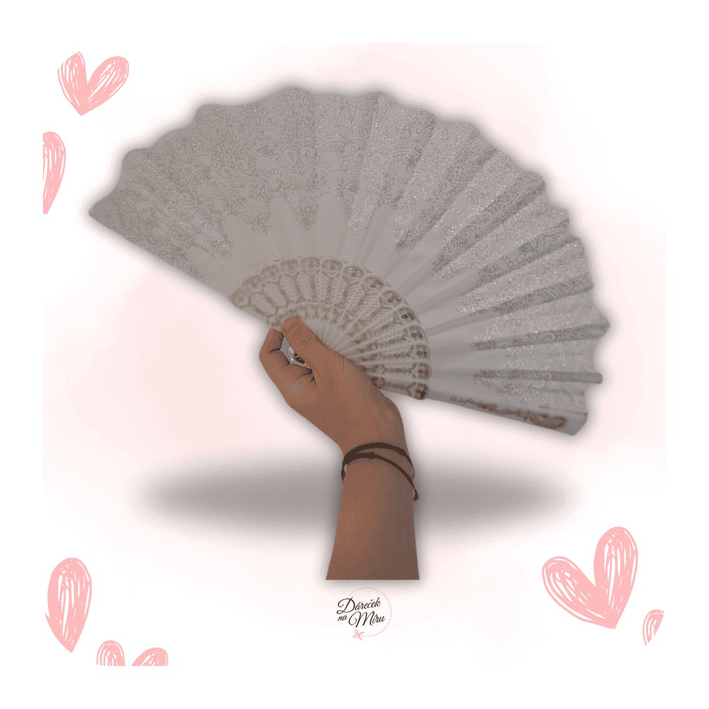 Vějíř využijete na společenské události i na karnevaly. Je ozdobeno zdobením stříbrné barvy.