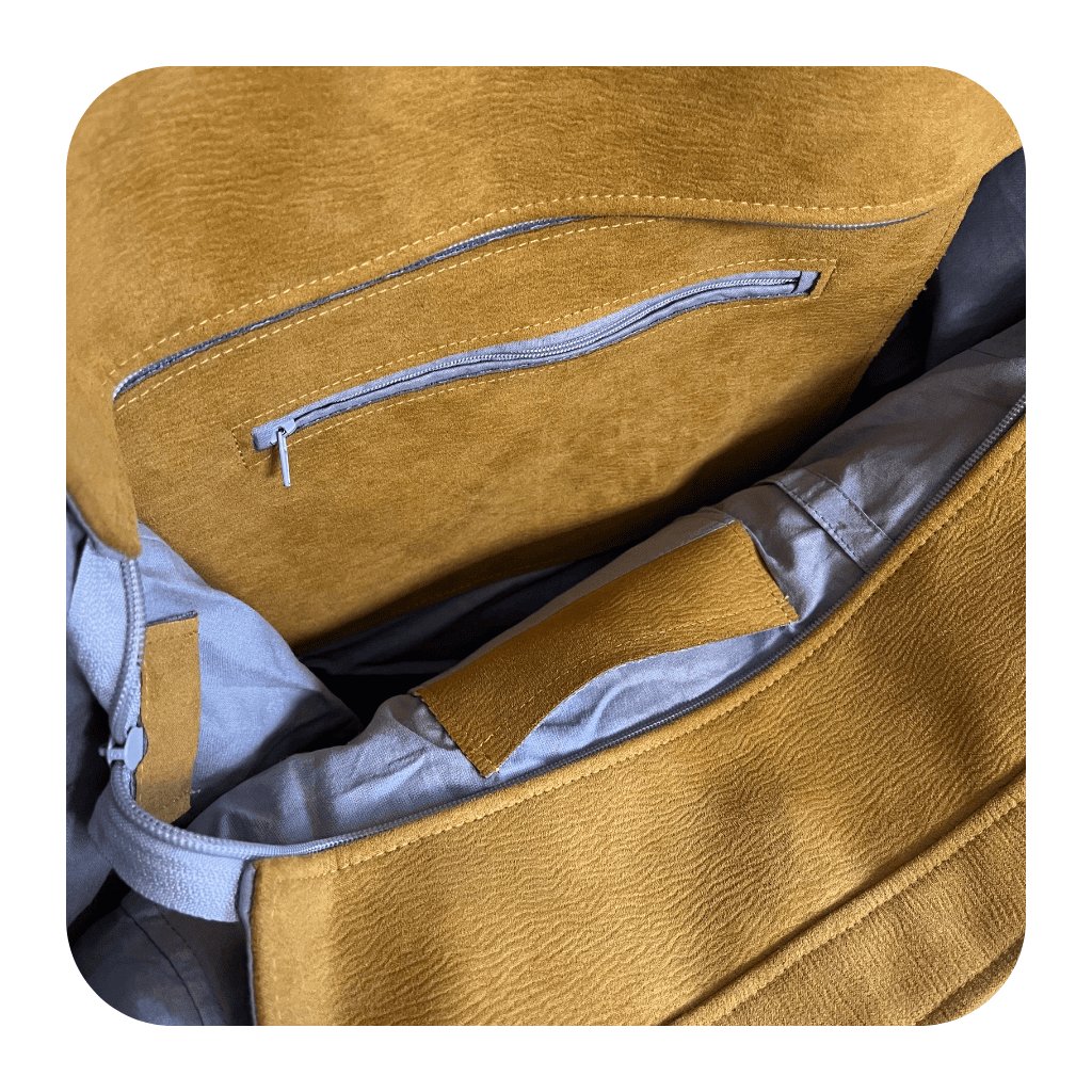 Ručně šitá kabelka od designéra HAIROO z veganských materiálů. Prostorná, lehká a ideální do města! Uvnitř najdeš krásnou podšívku, kapsu na zip a kapsu na mobil a také praktickou hledačku klíčů.