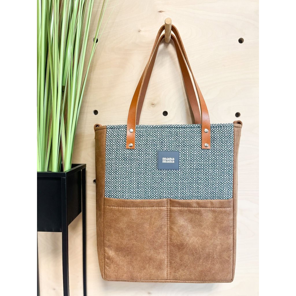 Velká kabelka MANA MANA Minimalistická Zelenomodrá/Karamelová kůže