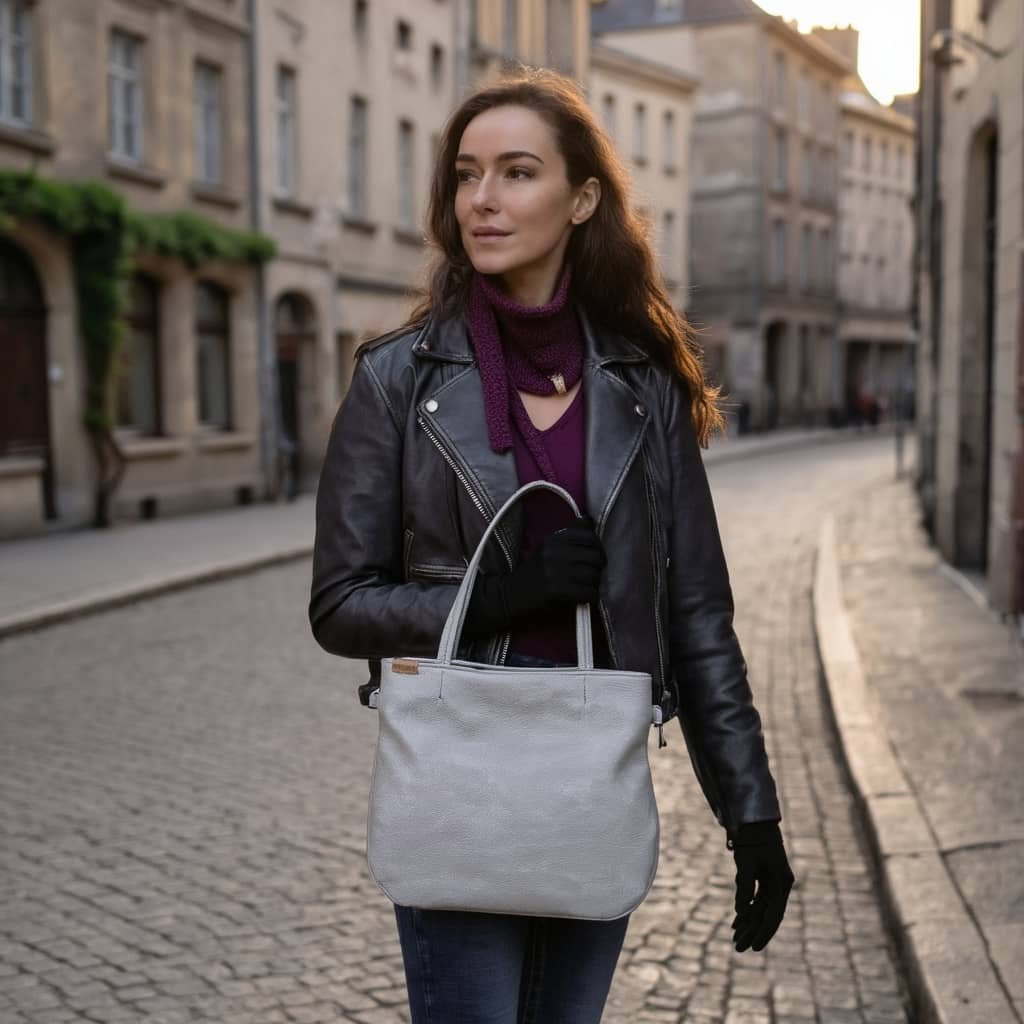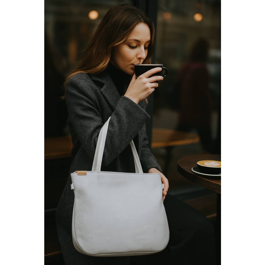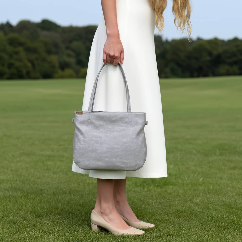Světle šedá kabelka Pacco Hairoo z prémiové eko kůže má všechno — prostor, eleganci i šmrnc.